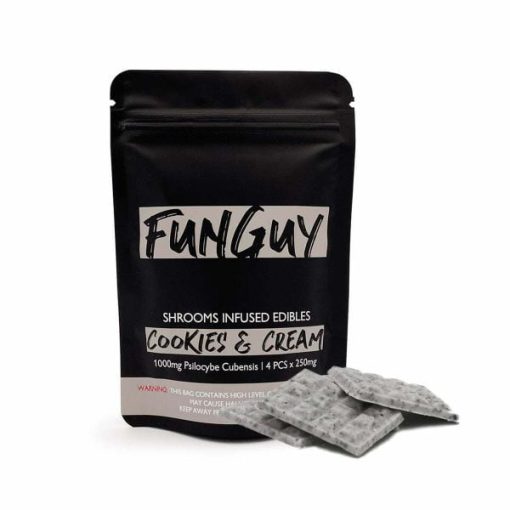 Cookies & Cream 1000mg Psilocybin for sale. Not wild about the shroom taste? FunGuy chocolates are the thing for you! FunGuy chocolates are an easy and tasty alternative to enjoy psilocybin mushrooms. Delicious cookies and cream are the best way to enjoy shrooms. Conveniently divided into smaller pieces for microdosing.